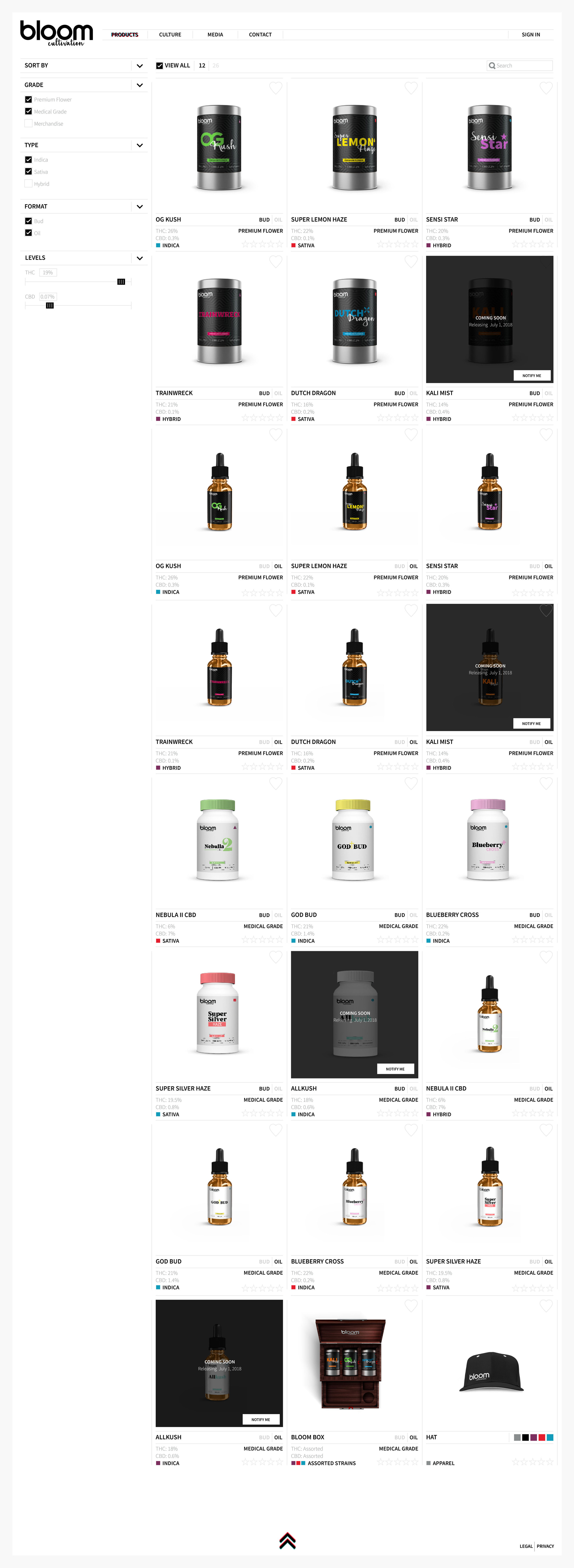 With a strong brand in place, we designed a website that brought contemporary cannabis lifestyle and Bloom's craft product line together seamlessly. The site offered an intuitive online experience that easily integrate ongoing product development and availability.
